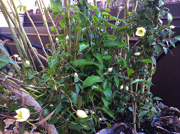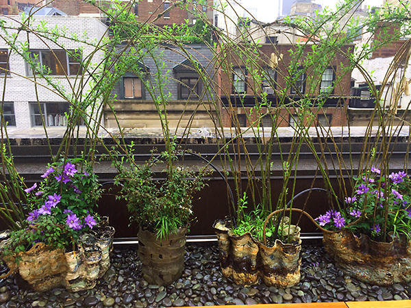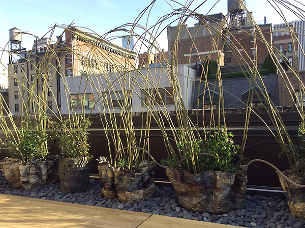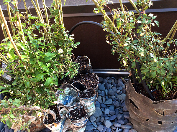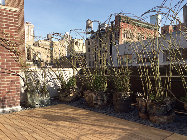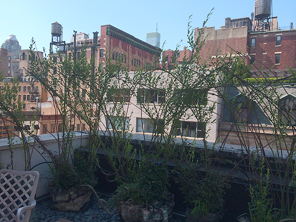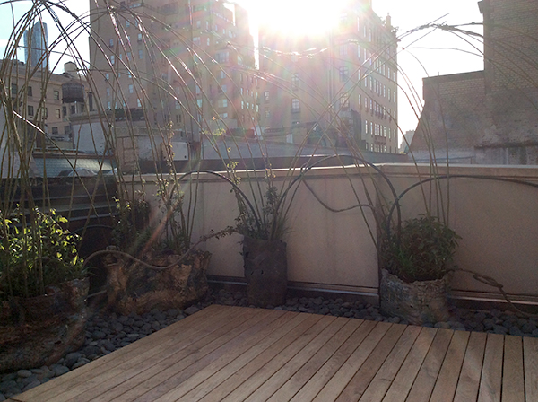longterm project/garden on the roof top with sculpted plants (Willow, Clematis, Morning Glory and Japanese Grass),